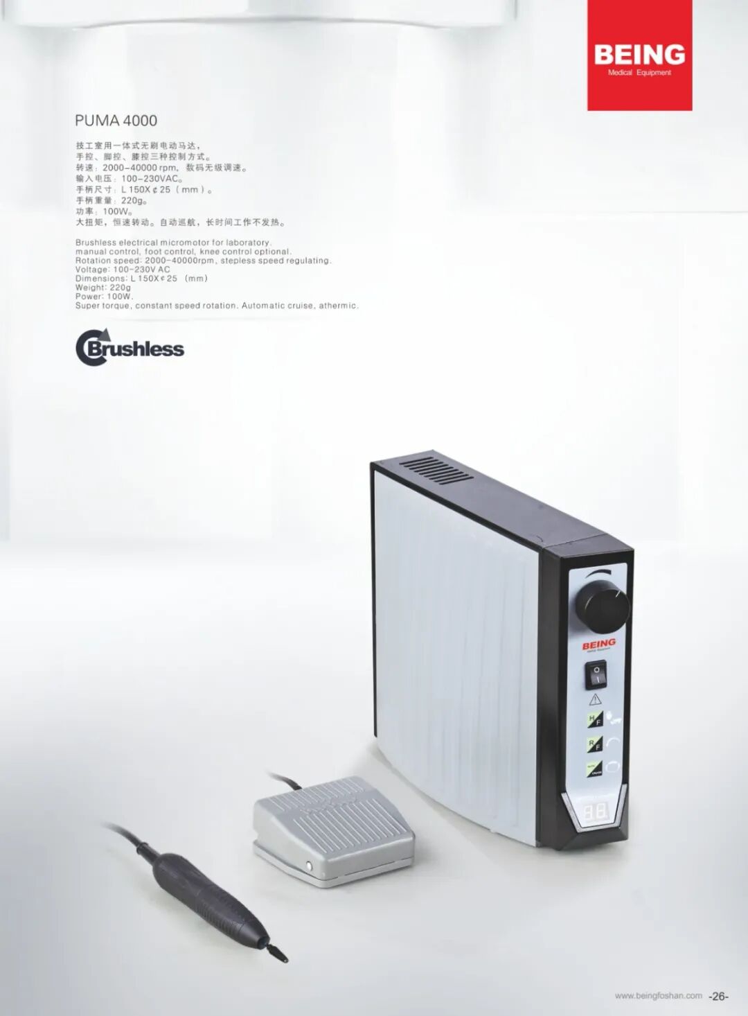 极佳得静音性能以及可忽略得震动,先进得材料与精巧得设计使得产品可靠性与耐用性超乎想象!完美的人体工程学设计使得口腔手术变得简单!